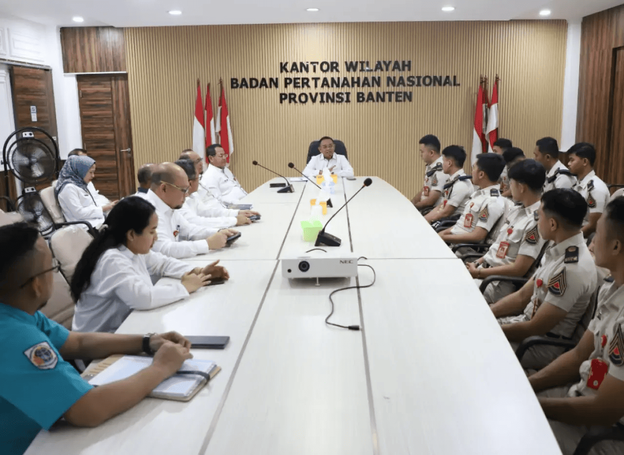Serang – Kepala Kantor Wilayah Badan Pertanahan Nasional Provinsi Banten, Sudaryanto menerima Mahasiswa Sekola...