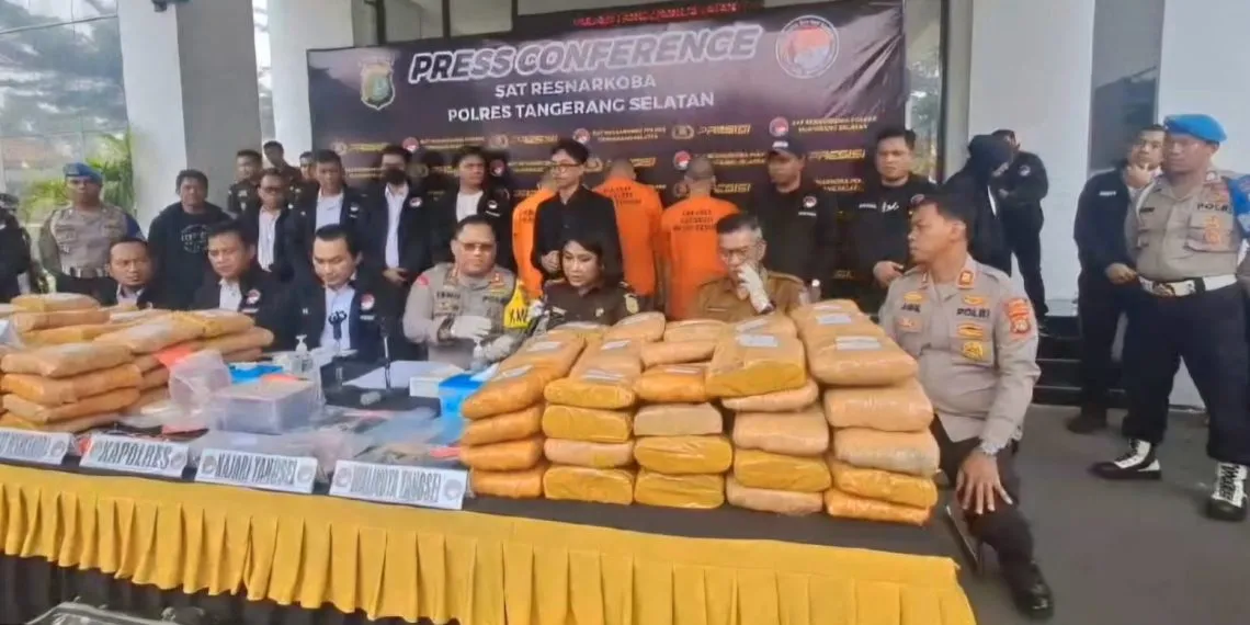 TANGSEL – Polres Kota Tangsel memperlihatkan barang bukti hasil pengungkapan narkotika jenis ganja seberat 140...