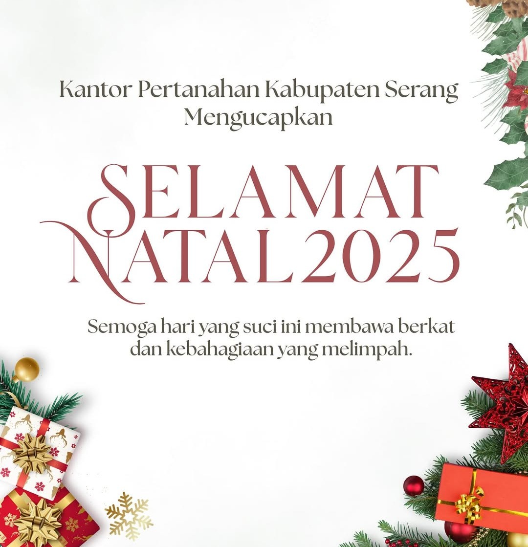 Kantor Pertanahan Kabupaten Serang mengucapkan Selamat Natal Tahun 2025 (25/12). Semoga Natal tahun ini membaw...